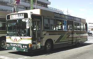 姫路市では、昭和10年頃から市営バス構想を打ち出していたものの種々の困難から実現せず、 戦後になって旧姫路市周辺の飾磨、勝原、網干、広畑、白浜、大津などの町村合併の条件として、 地域住民から市バス開設の要望があり、戦後の混乱も続く昭和21年11月に幌バスによって 無料運行を開始し、同じ年の12月から網干線、野里線、白浜線で営業運転が開始されました。 長年、姫路市内にも路線網を広げていた神姫バスとの競合が続き、 昭和47年に、神姫バスと市営バスとの間で路線交換が実現し、 市営バスと神姫バスとの競合区間は市内の中心部を除いてほとんどなくなり、 今では合理的な路線網を築いています。 料金は区間制で、一区が170円。 2区目からは30円ずつ上がっていく感じの運賃体系です。 車両は従来のワンステップバスに続いて、98年秋からノンステップバスを2両導入し、 姫路駅−商業高校前間などの路線で運行しています。 | |