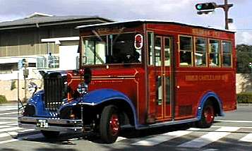 昭和初期頃のボンネットバスを忠実に再現。 バスは小型で、収容力も小さいのが少し難点かもしれません。 |