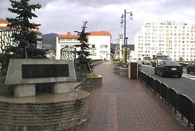 宝塚大橋 宝塚南口駅から大劇場方面へ結ぶ武庫川に架かる橋。現在のような橋になったのは昭和49年。景観も良いので、宝塚映像関係のドラマ以外にも 宝塚を取りあげたテレビ番組にはよく登場します。 『事件ですよ!』の第一回では、この宝塚大橋を渡っていた岡江久美子が、写真前方右にある マンションの屋上から飛びおりる人を見てビックリするシーンがあります。 それいけ!ズッコケ三人組…では、大川にかかる『大橋』という名前になって登場します。 阪急宝塚南口下車 |