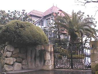 ここは芦屋の有沢家 ドラマの中では、芦屋市上芦屋町12番地という架空の町名になっていますが、 ココは宝塚市雲雀丘2丁目です。この付近は大正末期から高級住宅街として整備され、芦屋と並ぶ関西でも知られる 高級住宅地で、豪邸が建ち並ぶ地域。その中でもこの洋館は昭和初期に建てられた家で、 戦後の一時期は進駐軍のダンスホールとして接収されていたとか…。 阪急雲雀丘花屋敷駅から北西へ徒歩6分 |