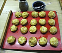写真のように玉は小ぶりで1人前20個入り。ダシは冷たいダシで、アツアツの玉子焼きを冷たいダシに入れて食べる。