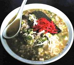 しかし、予想していた白いとんこつではなくて、しょうゆ色の茶色く濁ったトンコツ醤油味で、