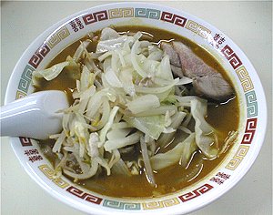 てんこ盛りになっているのは、ボイルしたモヤシと玉ネギ、キャベツ。野菜たっぷり入ってカレーのスープと絡まってナカナカです。