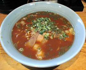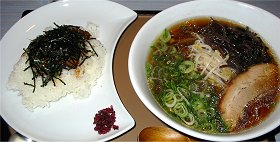 麺はストレート麺で、スープは豚骨&トリガラベースのあっさり気味の醤油味。