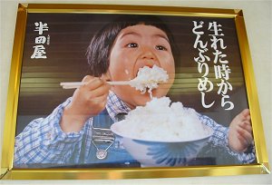 『生まれた時からどんぶりめし』のキャッチコピーと、 おかっぱ頭の女の子のインパクトがすごい(^_^;)
