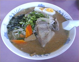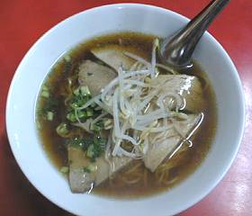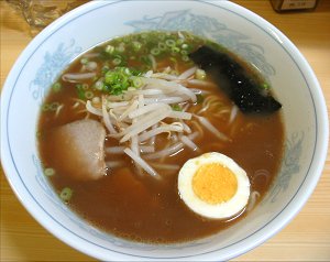 しょうゆラーメンは豚骨ベース。塩は少し塩味のキツイスープであっさりとも言えない味でした。 トッピングには、ネギ、チャーシュー、モヤシとゆで卵の半身。麺は少し硬めの細麺。まずくはないが、食べていてどう表現したらいいか良くわからない。 テーブルコショウとニンニクを加えて食べてみたら某即席麺風の味になってしまった。