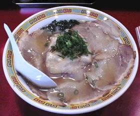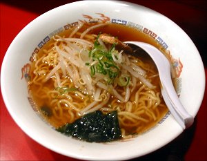 ラーメンは鶏ガラ中華風醤油味スープと言ったらいいか、麺は縮れ麺で具はチャーシュー、もやしなど。
