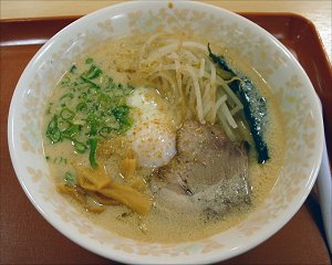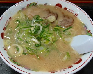 さ〜てラーメンのほうはと言うと麺は細麺スープは結構コクがあってサッパリした豚骨スープで、しかも少し甘い味が感じられる。