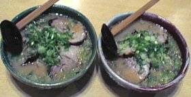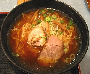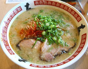 ラーメンは、さっぱり味のとんこつ風味。チャーシューは薩摩の黒豚を分厚く切って入っている。