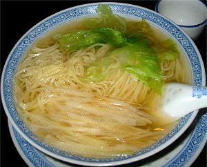 鶏ガラスープをベースにし、ほんのりと甘みの感じるあっさり醤油味仕上げで、麺は細ストレートのコシのある卵麺。