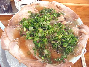 覚悟していたとはいえ、さすがのチャーシューの量。そこへ大量のネギとモヤシ、