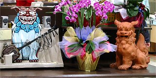 店内には沖縄関連グッズがいろいろ飾られている上に、沖縄民謡まで流れている。