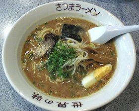 世界の味・さつまラーメンの白い丼鉢が懐かしい、さつまラーメン系のお店です。