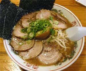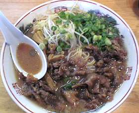 麺はストレート麺を使い、スープは豚骨ベースでコクのある醤油味。