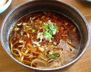 胡麻ネギらーめんは、胡麻をきかせたスープで、トウバンジャンが少し入っているほか、ラー油も加えてちょっとピリ辛。