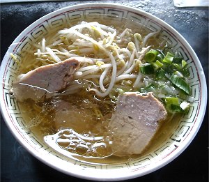 前回は「ちゃーしゅう麺」を食べたのだが、今度は「つけ麺」と新しく登場したという「胡麻ネギらーめん」食べる…。