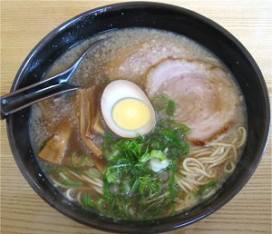スープはとんこつ系のダシとカツオ節など魚系のダシとを合わせたWスープ。
