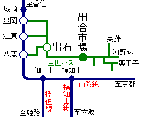 豊岡駅 (発) | → | 出 石 (着) | | 運転日 | 出 石 (発) | → | 出合市場 (着) | 行き先(終点) |