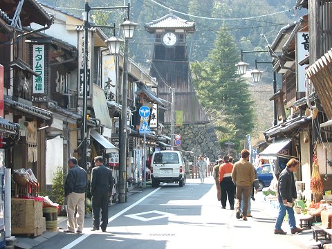 [写真上]…辰鼓楼(辰鼓櫓とも書く)と、出石の町並み