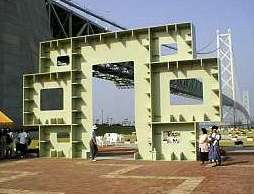 これは主塔の実物大の断面。 一緒に写っている人と比べると、その大きさがよくわかります。 |
